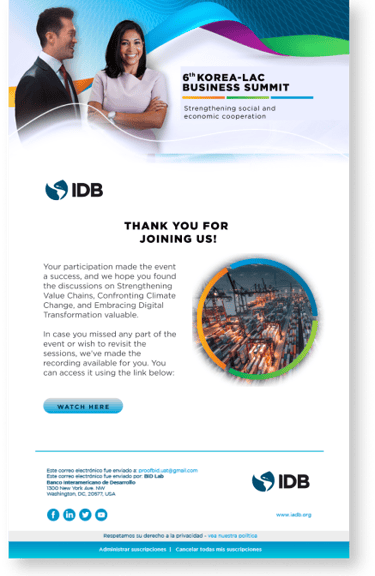 After the event, follow up with an email campaign to share event highlights or key takeaways, express gratitude to participants, and extend invitations to future events.