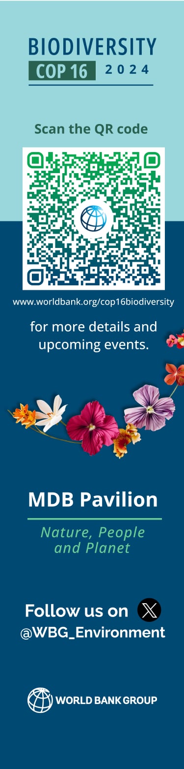 Position the World Bank as a global leader in biodiversity finance and action at COP16, showcasing its commitment to nature-based solutions and the integration of biodiversity into sustainable development and climate resilience strategies.